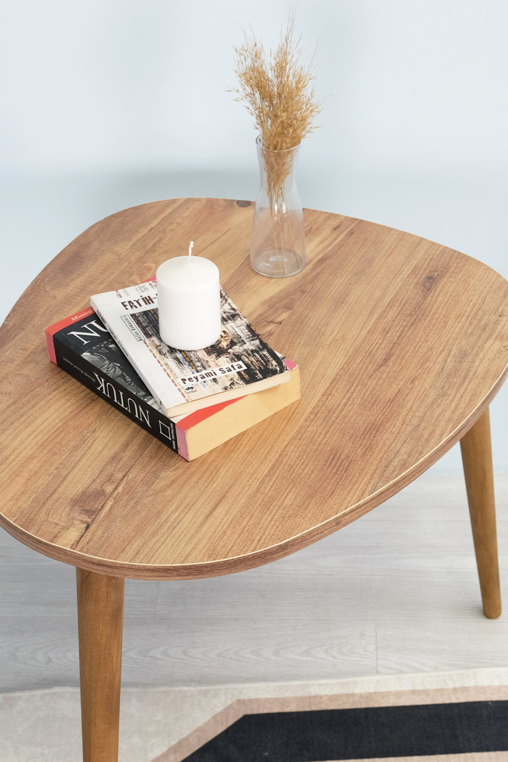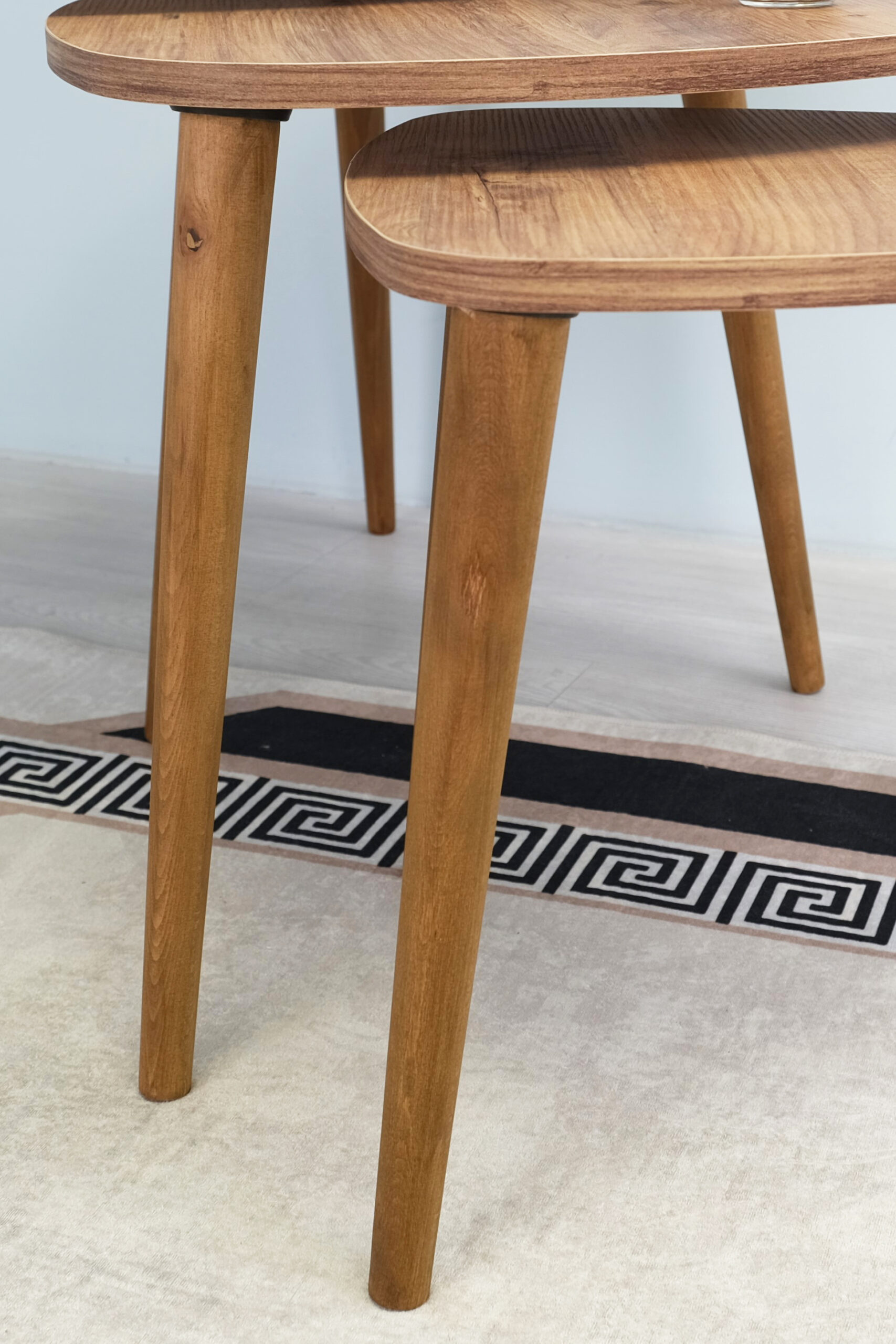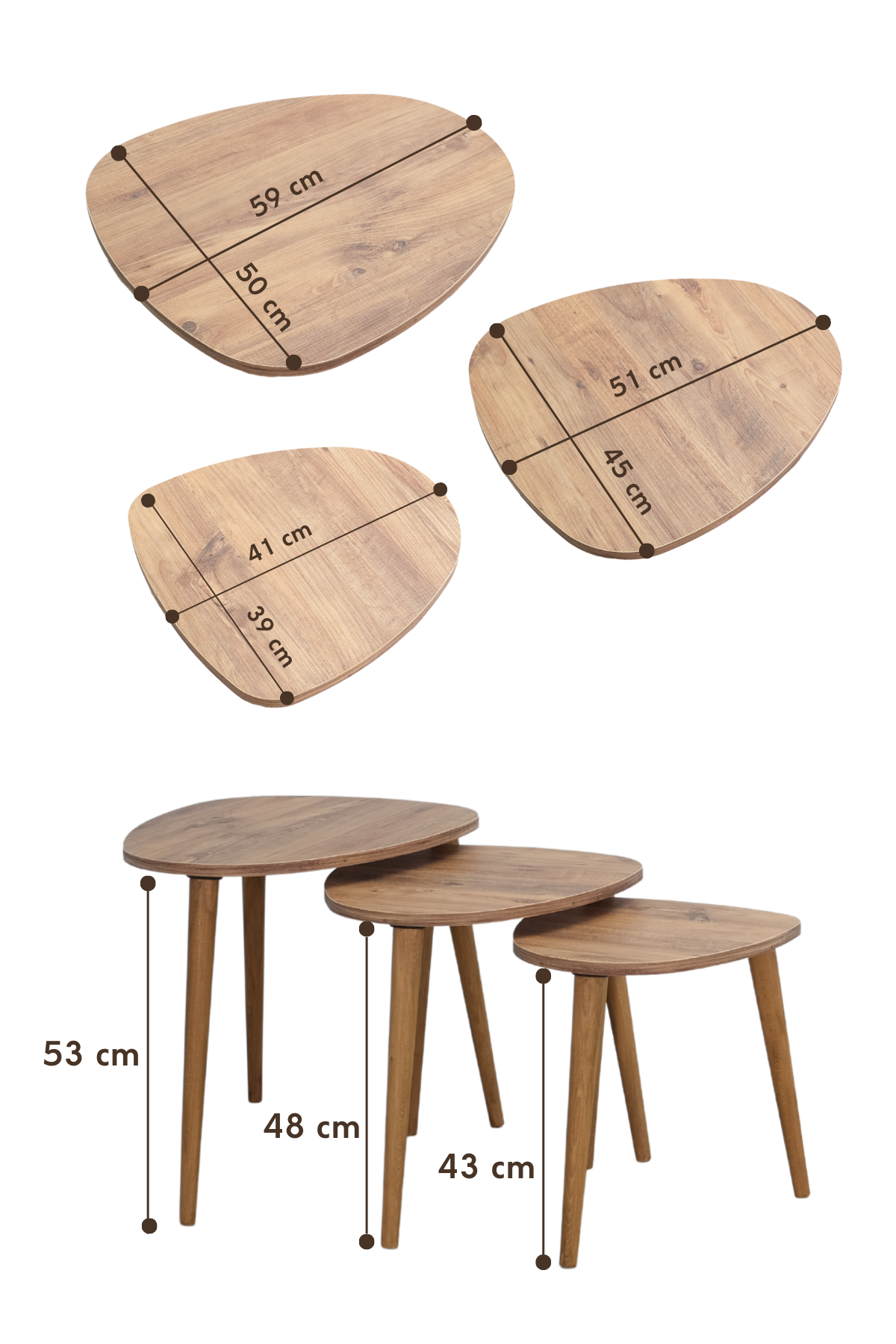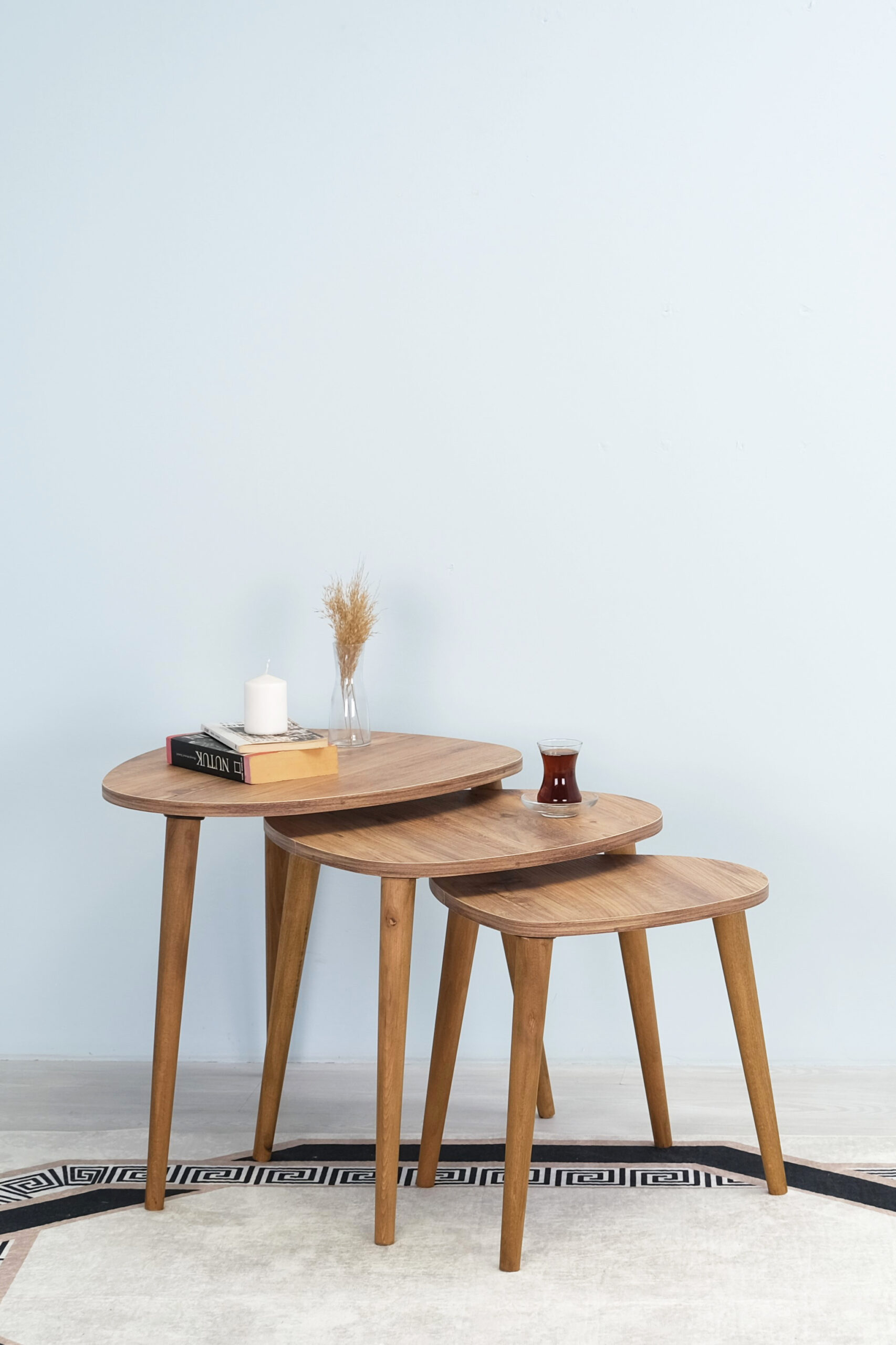 Damla 3’lü Zigon Sehpa Takımı – Çam Renk | Gerçek Ahşap Ayaklı