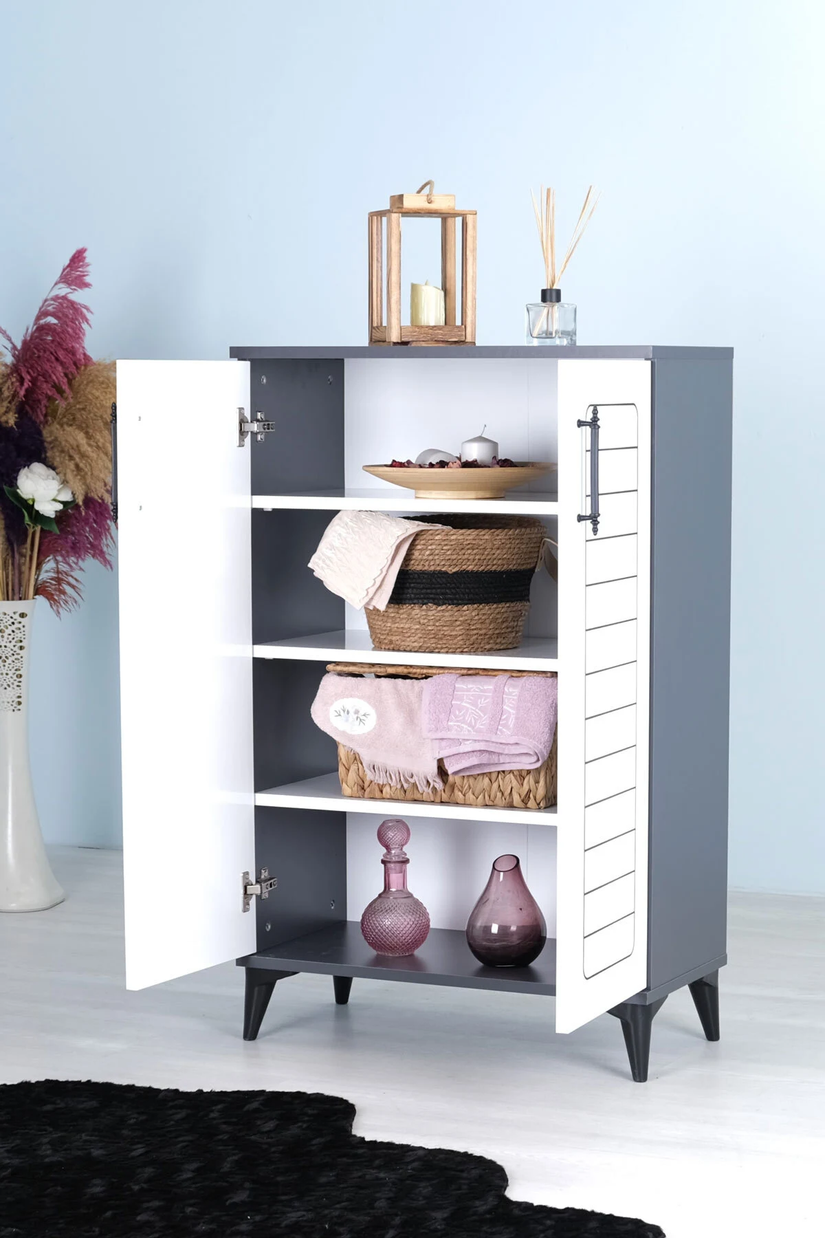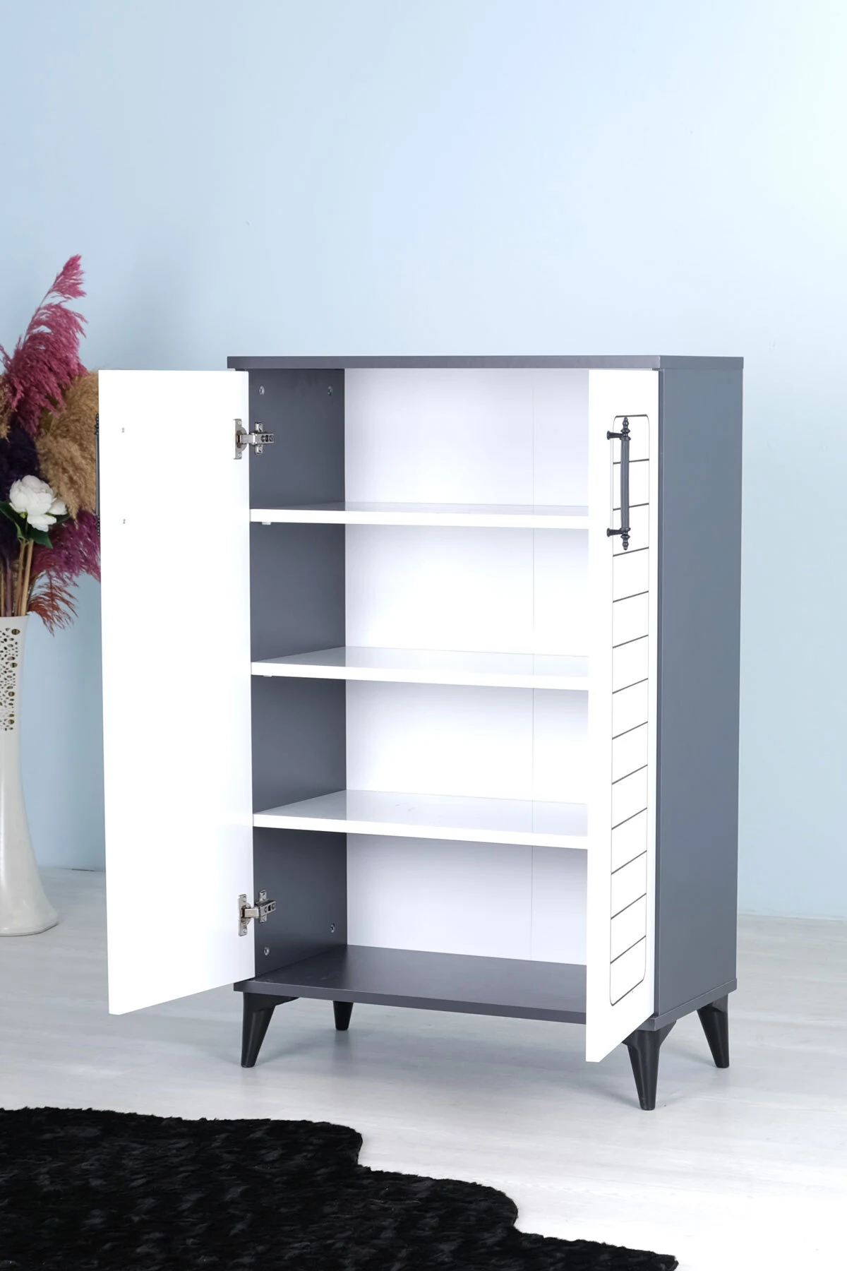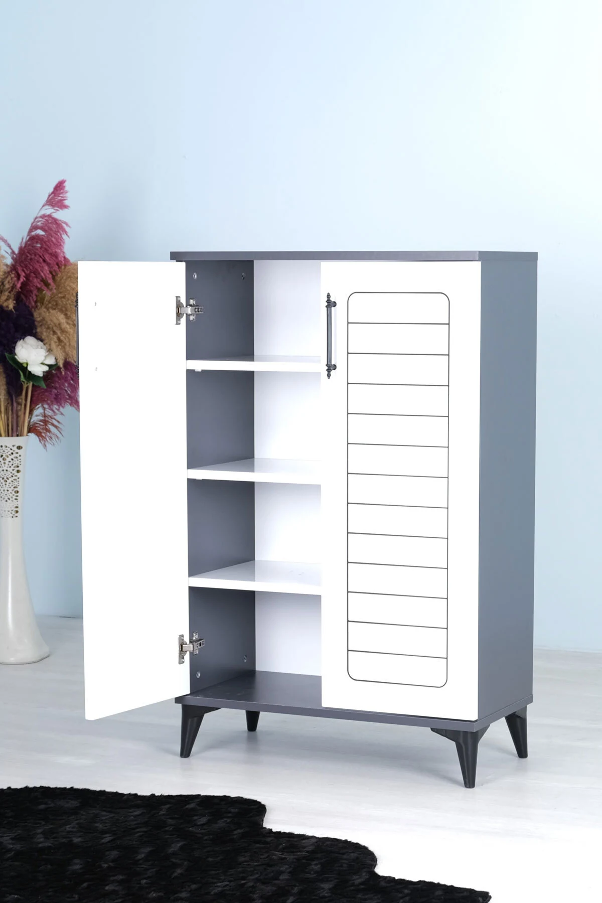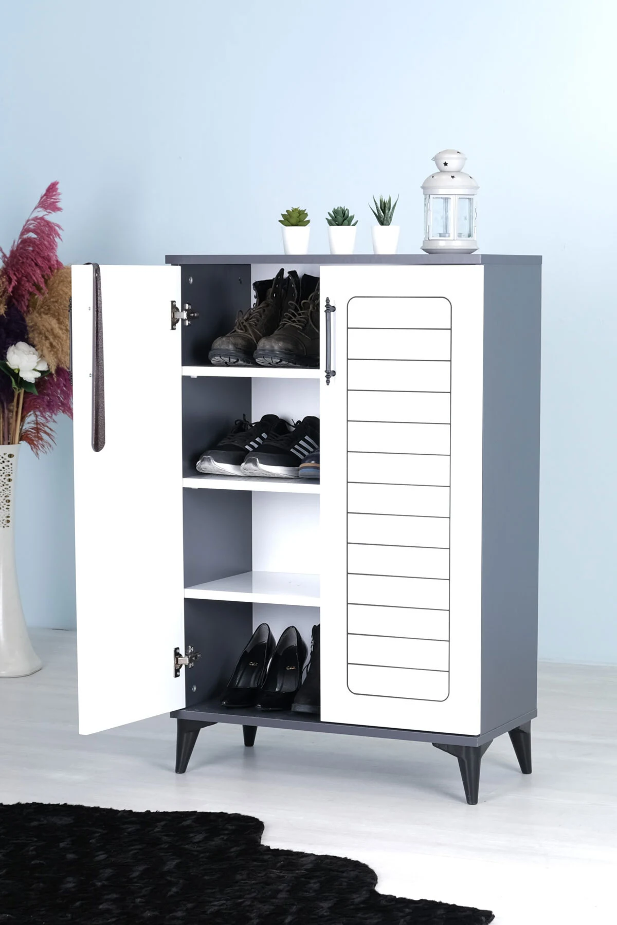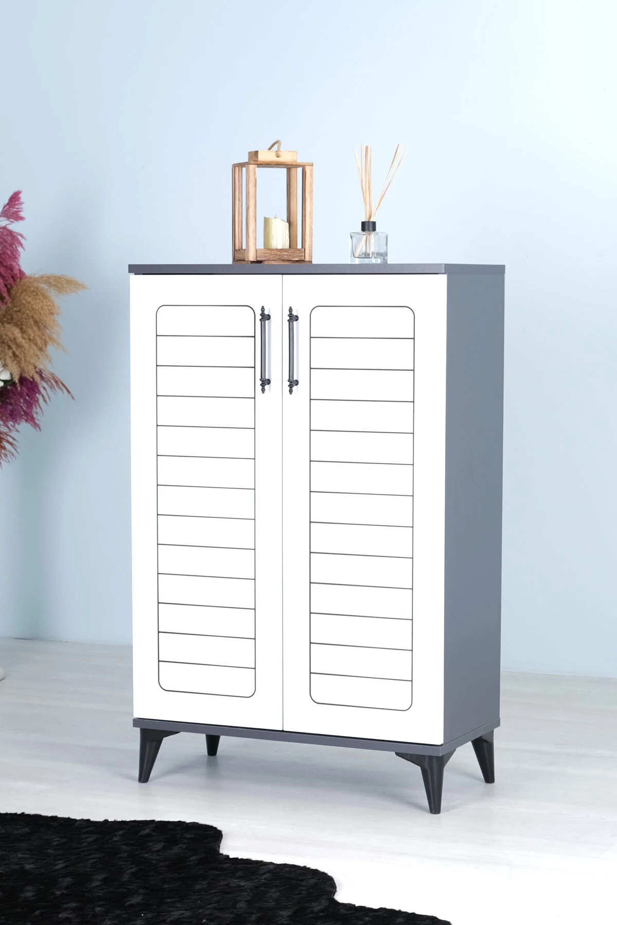 Luna 2 Kapaklı 4 Bölmeli Modern Ayakkabılık – Beyaz / Antrasit | 70x108x35 Cm
